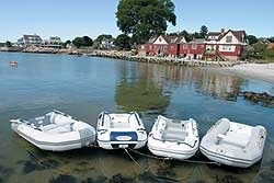 Aqua Dutch 310: This is a competitively priced boat with some nice design features. Selling in the United States mostly at boat shows and over the Internet, this small company doesnt offer much in the way of dealer and service network, but we liked the looks of this boat, which is aimed at the cruising-sailor market. You can specify either Hypalon or PVC tube material and either a plywood or a more substantial solid-fiberglass transom, the choice being determined by how much youre willing to spend.