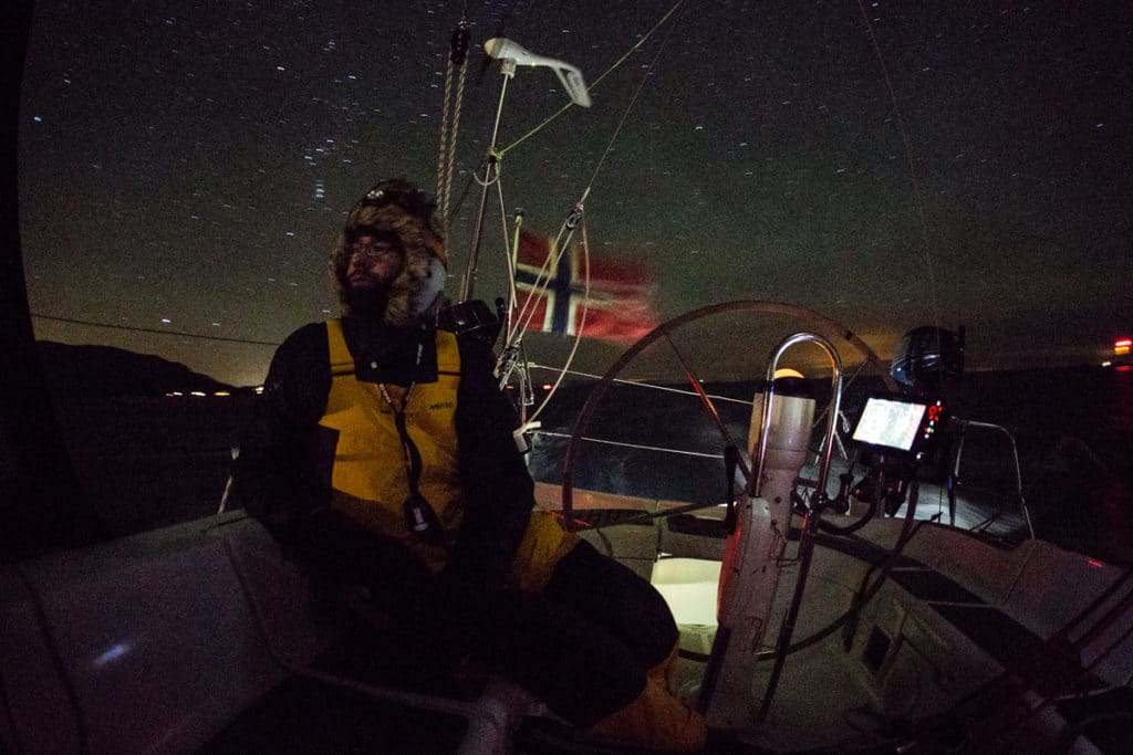 As we pushed north, the green hills of the south were soon replaced by snow-covered mountains. We adapted a 3-hour watch system and the time flew by as we navigated through narrow fjords and channels, with the weather ranging from snow and gales to calms with clear skies, stars and the gift of the Northern Lights dancing on the horizon. The diesel heater was running continuously below deck and morale was as warm as the temperature, even as outside the mercury plunged to -20 degrees Celsius. On watch it was somewhat cold and, at times, very exciting navigating in more or less continuous darkness through a minefield of underwater rocks.