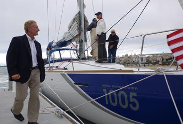 Harry Mountain, regional operations director, bids farewell to the crew before they take a Sunsail First 40 up the bay to Sausalito.