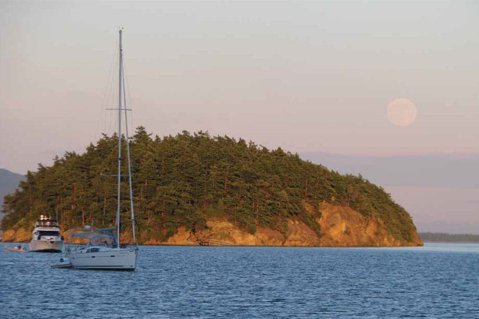 What a perfect coincidence. It was June 22, the day of the Summer Sailstice, the worldwide celebration of sail on the solstice. Aboard Raven, our Catalina 42, not only had my mates and I remembered to bring along the event’s burgee, we actually remembered to raise it too, letting it fly during a light-air sail from the base of San Juan Sailing in Bellingham, Washington, to Sucia Island, one of the San Juans group.