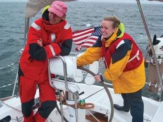 Two years ago, as the remnants of Hurricane Katrina passed over Maine, my daughter Kristi, my friend Geoff Mason, and I entered Eggemoggin Reach from the east. The wind built to more than 35 knots. Geoff steered Whirlwind as she reached 9.3 knots, a record that stands to this day.