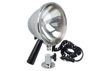 No cruising boat should head to sea without a powerful searchlight to identify buoys at night, check sail trim, send signals, and be readily at hand for emergency situations. And Perko’s Removable Handheld Deck Control Searchlight (model 0440) will fill the bill. There are several units in the line, featuring 4.5-inch or 7-inch sealed-beam bulbs, powered through 12-volt or 32-volt cigarette lighter-style plugs. A watertight deck connection keeps the light securely in place for stationary use, while an 8-foot cord allows for on-deck mobility. The company states that the powerful beam will penetrate fog, rain, haze, and even smoke.