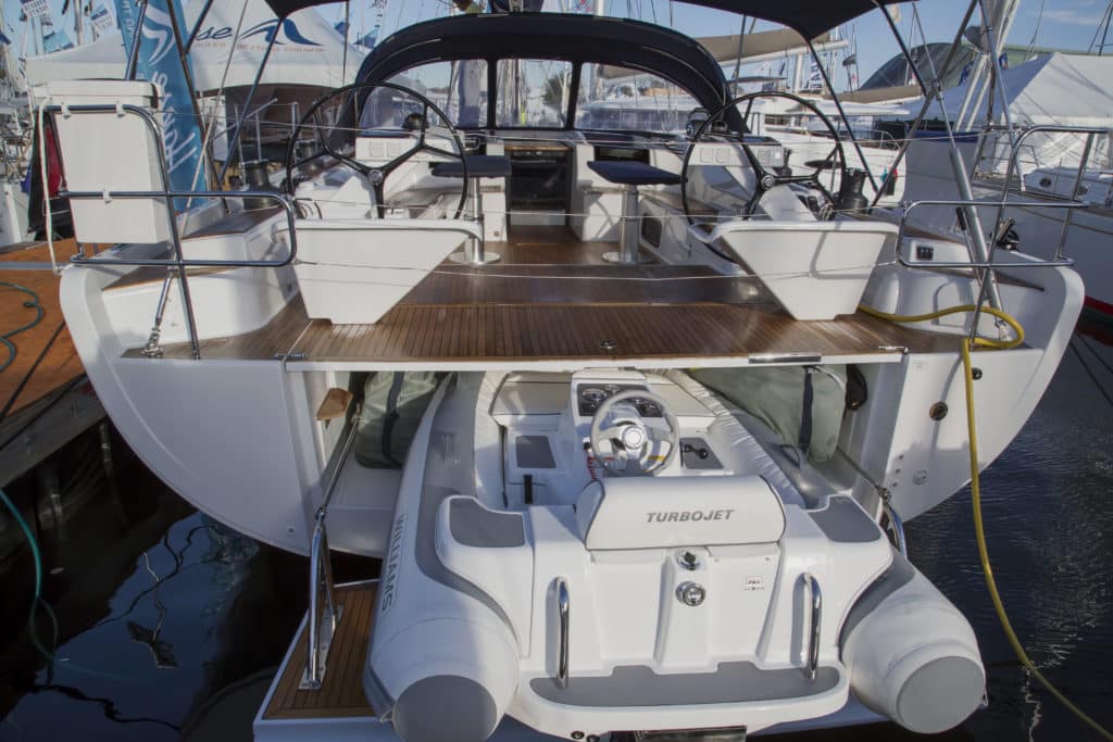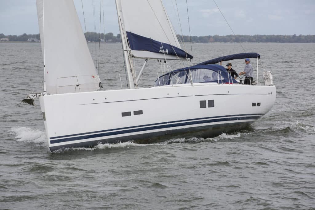 Built in Germany, the Hanse 575 earned praise for the high level of sailing performance and the quality of detail in execution. With angular lines and plenty of recessed hatches, the design in clean and modern. hanseyachts.com