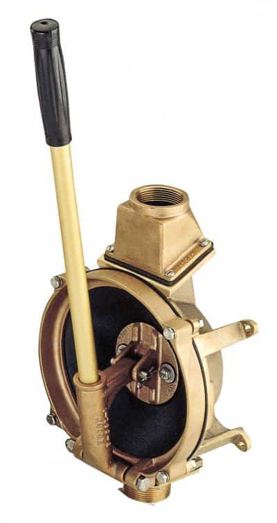 | |A manual diaphragm pump can move a large volume of water and is good to have as a backup bilge pump. This model from Edson can pump up to 18 gallons a minute.|