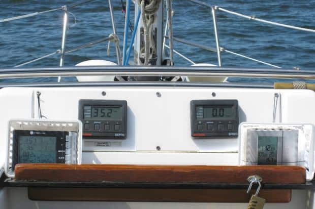 Mount the unit with the sensor pointing north or in the 12 o’clock position. It tells both wind speed and wind gusts. You can set a wind alarm to alert you to increased winds, which I find is nice not just under sail but also when at anchor. I bring the receiving unit down below when we spend the night as a simple way to tell if I need to check the anchor and let out more rode.