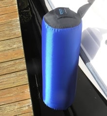 A Florida company called Boat Bunkers has a solution for this storage problem: inflatable fenders. The fenders, available in four sizes and six colors, consist of tough inflatable bladders with fabric covers designed to be gentle on your topsides . When you’re finished with them just pull the plug, deflate, and stow them somewhere small. A set of four of the largest size (36-inches long x 12-inch diameter) with a storage bag and a foot pump sells for $220.