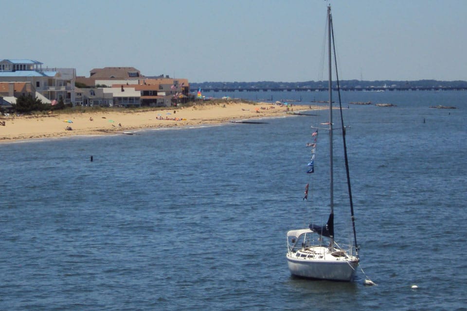 76* 14′.42 W Webb, there is no mooring nor cruising ground better than yours except mine on the spectacular Chesapeake Bay! My mooring off Willoughby Spit in Norfolk, Virginia, sits at the mouth of the Cheasapeake Bay. My floating paradise constantly entertains me with an international parade of small and large, commercial and private, power and sail, and military and recreational vessels. Nature awakens me every day as the sun rises above the horizon just beyond the Ocean View fishing pier. The “big E” cries for adventure. So, we cast off with friends to an abundance of nearby snug harbors with rainbows after every rain shower! This mooring is fully equipped for aquatic diversity – my trusty jet ski speeds to neighborhood beach music, my hobie cat screams along the shoreline and my “Carribbean” pink dinghy crawls to a favorite fishing hole. Plus, 9 miles of soft sandy beach with a water temp in the upper 70s is only a short swim away! Best of all, I do not need to travel far to reach my mooring nor become a live-aboard. My mooring is in my backyard directly behind my beach house!