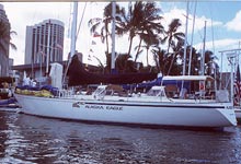Alaska Eagle is a training vessel run by the Orange Coast College School of Sailing and Seamanship (OCC) in Newport Beach, California. Built of aluminum by the Royal Huisman Shipyard in Holland 25 years ago, she was donated to OCC in 1982. Since then, she’s sailed some 200,000 miles with student crewmembers aboard.