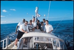 The Crowes offshore-seamanship teaching is both formal and informal. Every evening at 1700, the whole crew gathers in the cockpit for seminars in marlinespike seamanship, safety-at-sea strategies, or celestial navigation.