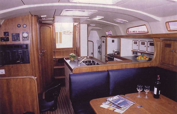 Designed by shorthanded racing guru Rodger Martin, the 47s slippery hull is put to cruising use. “Shes a detuned thoroughbred,” said BOTY judge Ralph Naranjo. “She has a shoal draft [6 feet] and a small rig, but shes real efficient going through the water.” The design brief was to create a low-energy, with a working sail area kept under 1,000 square feet. Shes built in South Africa of E-glass and epoxy over a foam core. “Epoxy is the best resin you can build boats out of,” said Ralph, “and all the signs were of a high fiber-to-resin ratio.” The layout above deck and below is elegantly simple. “It was hard to wipe the smile off my face when I was moving around that boat,” said BOTY judge Carol Hasse. The last comment in BOTY judge Skip Moyers notebook summed up the judges impressions: “Wow! I like this boat.”