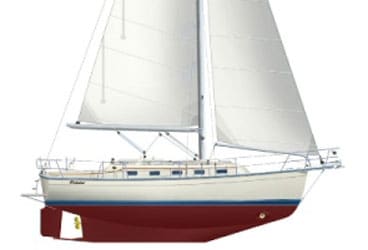 According to the company’s newsletter, the new design-and soon to be smallest of the fleet–is a response to potential owners looking for a smaller boat. The Estero will feature a sloop rig with a self-tending jib mounted on a Hoyt jib boom, full keel, and overall, it looks, well, like an Island Packet. It has the trademark molded bowsprit and anchor roller, swim platform aft, and one can reasonably guess that it will sport a cream-colored gelcoat.