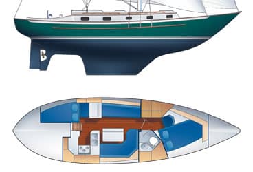 Here’s a 37-footer that might also be in contention for a pretty-boat award. It’s the product of designer Bill Crealock’s own experience sailing across oceans,