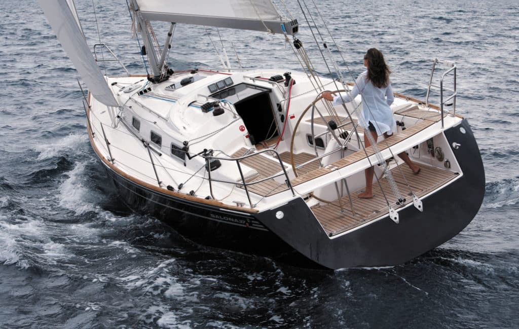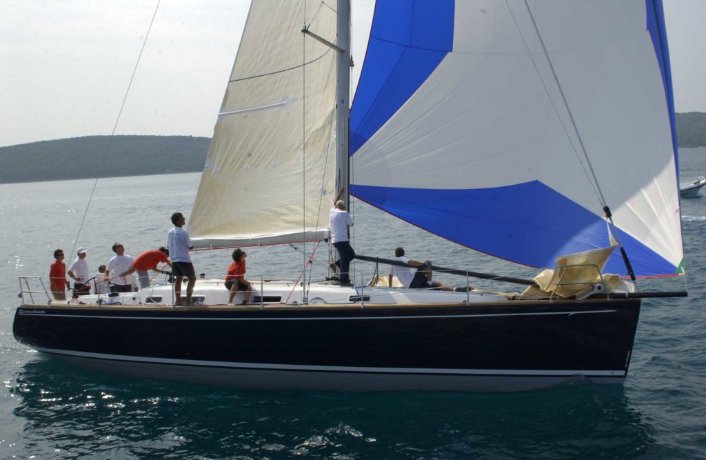The Salona 44, with triple-spreader rig and feathery twin wheels handles well both up and downwind in any breeze.