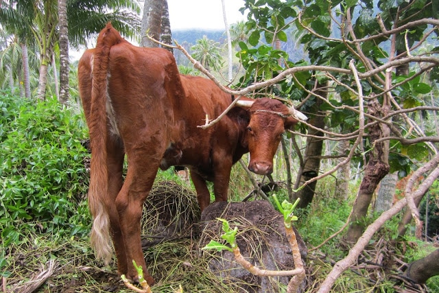It’s easy to imagine spending 3 months here, settling into the low-key vibe, getting to know individuals by name, and trading away everything we own to stay fed. But we wouldn’t have to trade exclusively. We’re also finding food on the ground, among rotting fruit strewn about, freshly fallen from trees in more remote areas. Yesterday we hiked up to a waterfall and returned with our backpacks full of guava, limes, lemons, a coconut, and Thai basil. We’re reticent to pick fruit from any tree, but feel okay stockpiling the freshly fallen among their rotting comrades.