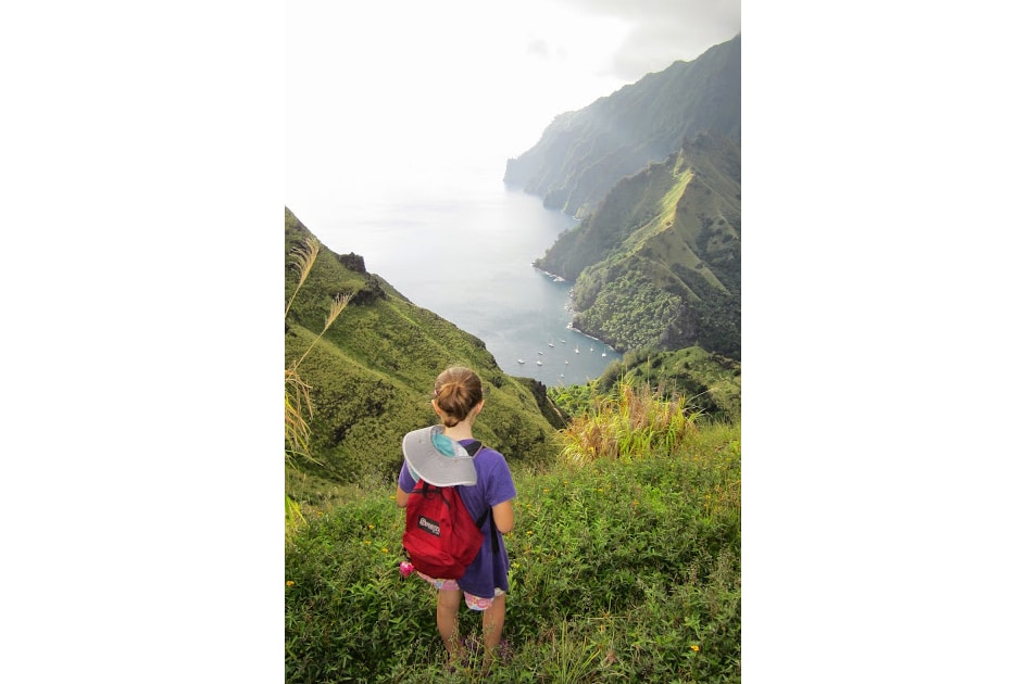 We were told to expect relatively low visibility in the waters around the Marquesan islands, and I suppose it is in a relative sense, but we can still see 50 feet in the cobalt-colored water of this deep Fatu Hiva anchorage.